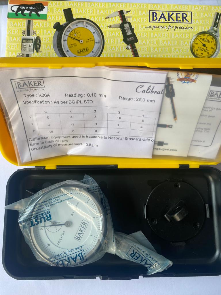 BAKER KO6A / DIAL GAUGE PLUNGER TYPE (0.1 MM L.C., 25 MM RANGE, GRADUATION 0-10), 56 MM BEZEL DIA