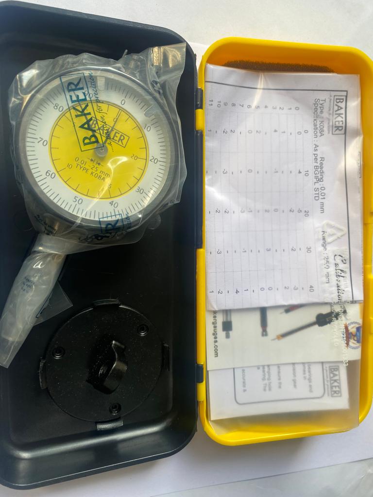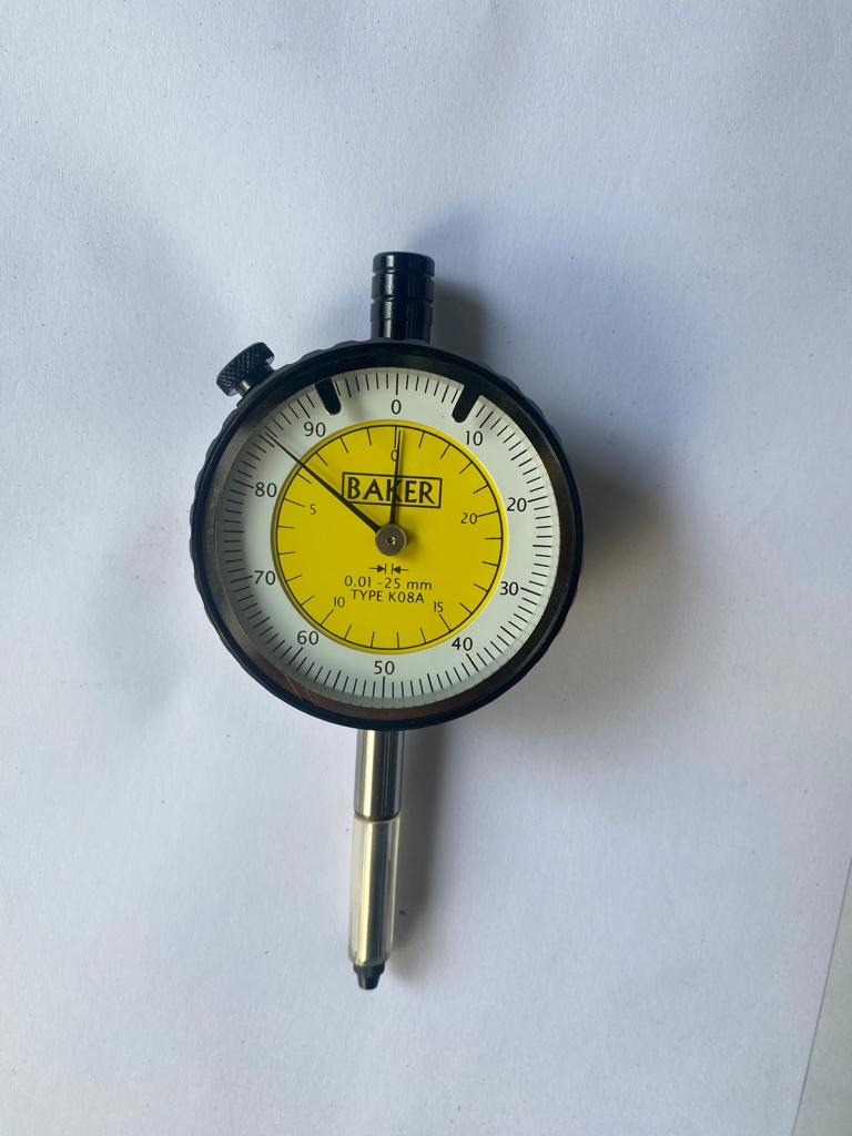 BAKER KO8A / DIAL GAUGE PLUNGER TYPE (0.01 MM L.C., 25 MM RANGE, GRADUATION 0-100), 56 MM BEZEL DIA