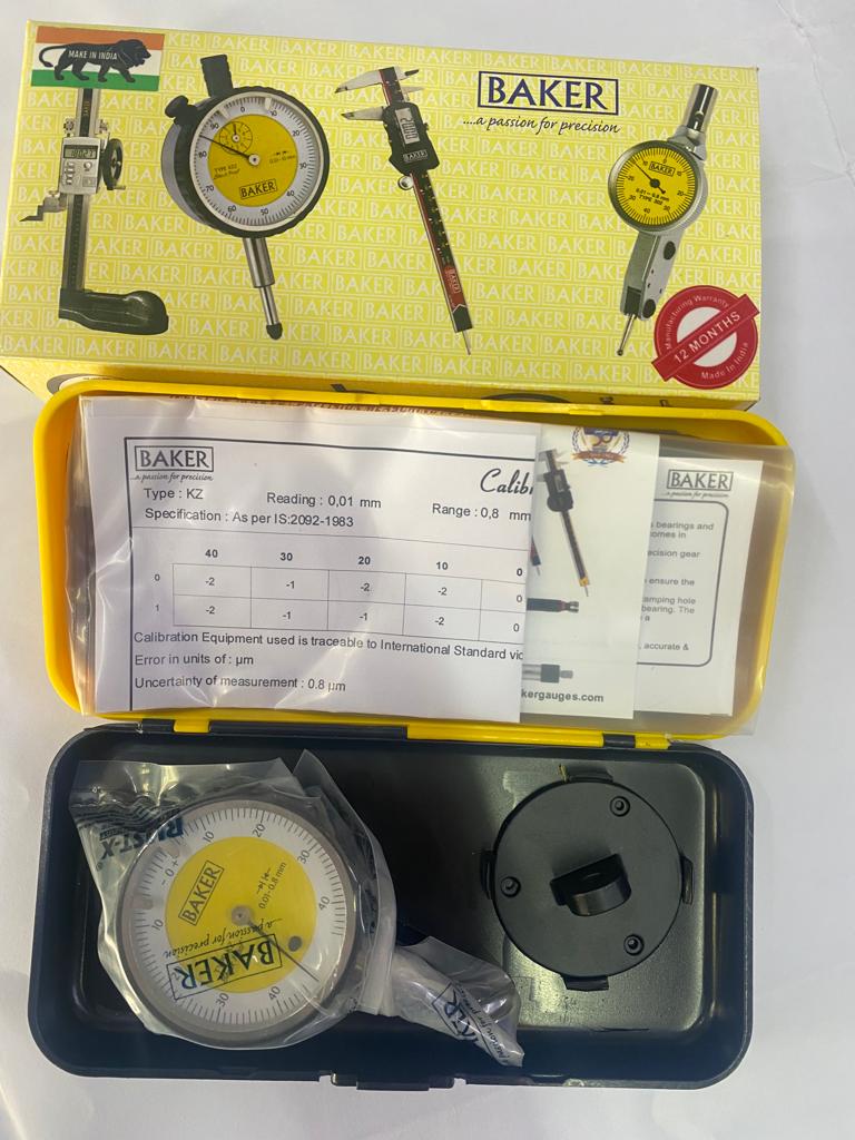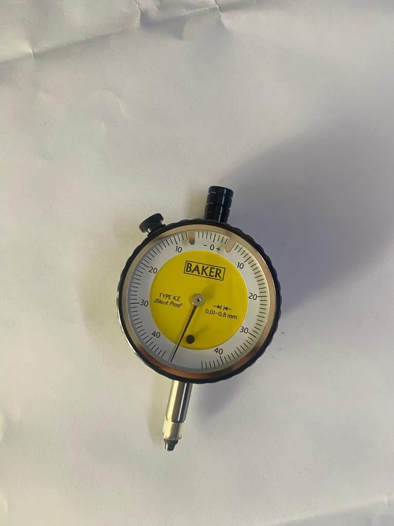 BAKER KZ / DIAL GAUGE PLUNGER TYPE (0.01 MM L.C., 0.8 MM RANGE, GRADUATION 40-0-40), 56 MM BEZEL DIA